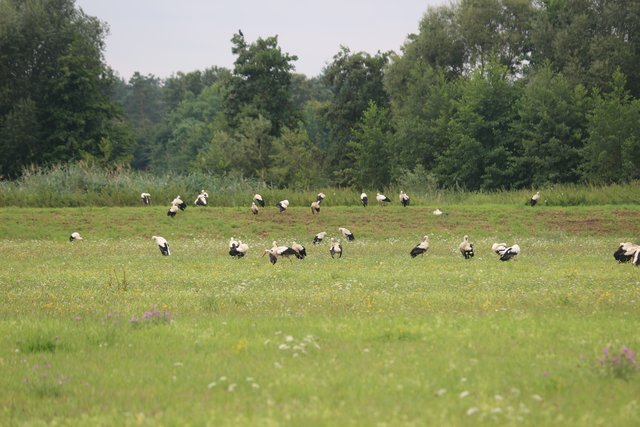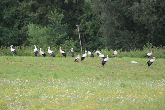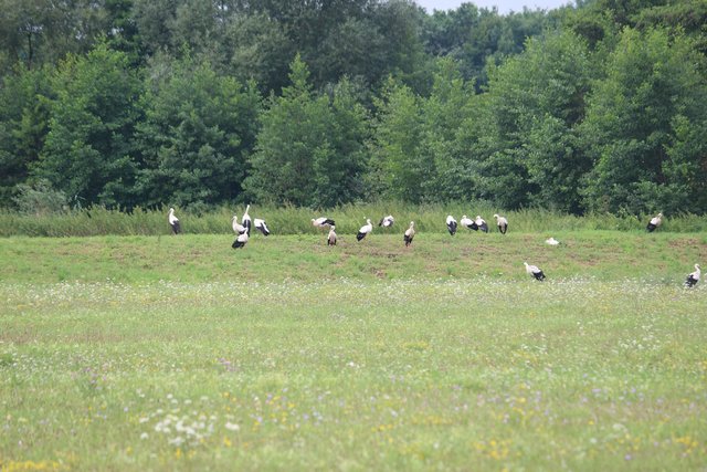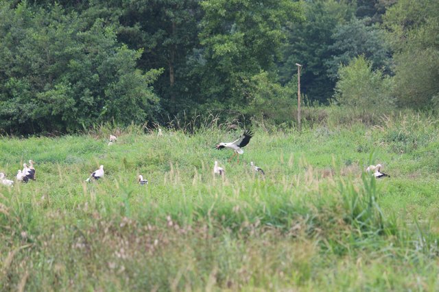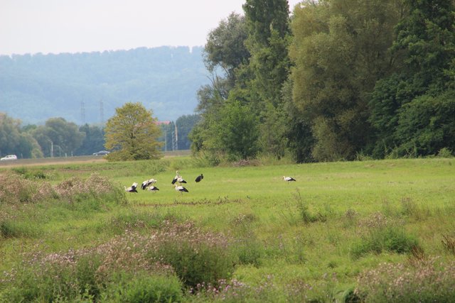 - Die Teilnehmer der Brettener Woche-Ferienaktion "Guten Flug, Meister Adebar" konnten beim Rundgang über die Saalbachwiesen zahlreiche Störche beobachten