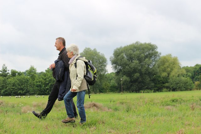 Mit viel Fachwissen veranschaulichte Debatin nicht nur die Geschichte der Wiesen, sondern vermittelte auch viel Interessantes zum Weißstorch, der in den 80er Jahren in Baden-Württemberg fast ausgestorben war. Nur noch 21 Brutpaare habe es im gesamten Bundesland gegeben, erklärte er seinen Gästen. In den 90er Jahren wurden dann im Zuge eines Schutzprogrammes mehr als 250 Hektar zumeist landwirtschaftlich genutzte Fläche auf den Saalbachwiesen renaturalisiert und Flachgewässer angelegt. Nicht nur die Störche, sondern auch zahlreiche andere Tier- und Pflanzenarten haben davon profitiert, berichtet Dabatin.