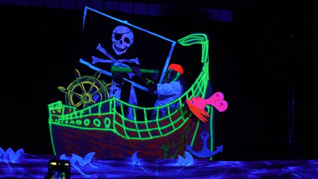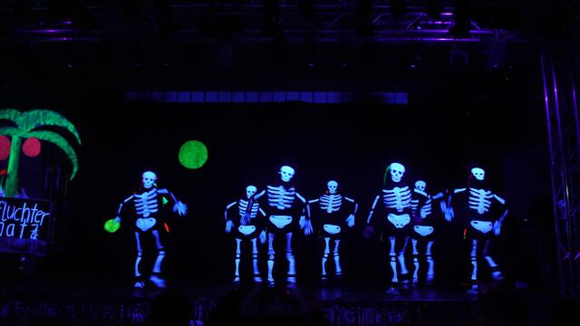 Volleyball and Friends entführten bei ihrer Schwarzlicht-Show in die Karibik und beleuchteten die Geschichte des Jack Sparrow, der mit einem verfluchten Schatz so seine Mühen hat. Faszinierend war der Wechsel zur Vollmondphase, wenn der Fluch aktiv wurde und aus bunten Kostümen Skelette wurden. Sophia Hofheinz und Steffen Sprißler-Posabella mimten „Emil und Erna“, ein lang verheiratetes Ehepaar, das zudem noch zu spät zu ihrem eigenen Programmpunkt kam. Oh je, da gab es einiges zu stänkern. Über die eigene Ehe, Gewohn- und Eigenheiten und über verpasste Träume.