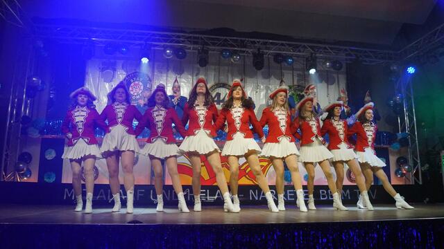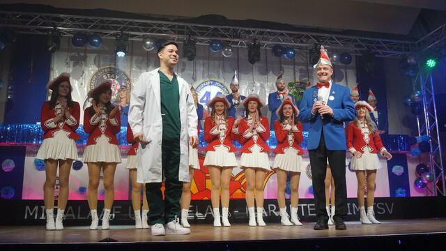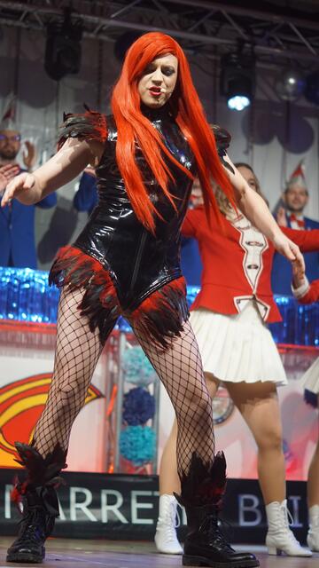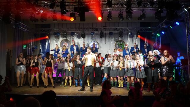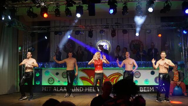 Die Handballer heizten dem Närrischen Publikum mit einer Playbackshow ein. Nicht nur ein sondern gleich zwei DJ Ötzis, gefolgt von Nina Chubas „Wildberry Lillet“ für die jüngere und „Warum hast du nicht Nein gesagt“ für die ältere Generation. Und von Helene Fischer, im roten Lack-Outfit mit oberkörperfreien Background-Tänzern, ABBA, den Flippers über Squid Game bis zum Ballermann Medley war alles dabei. Mit ihrem „Tanz durch die Jahrzehnte“ präsentierte das Faschingsballett (Leitung Tanja Volk) dem Publikum die Entwicklung der Tanzstile des letzten Jahrhunderts und wechselte dabei zu jedem Tanz ins passende Outfit. In die männlichen Rollen schlüpften dabei Elferräte und Handballer. Eine sehr bunte und abwechslungsreiche Show.
