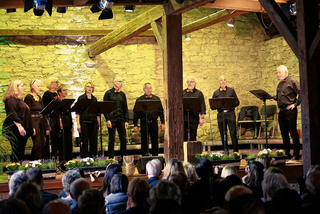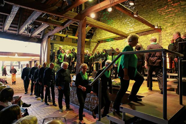 Dann erfreuten die A-Capella-Sängerinnen und Sänger der Gruppe „TerzKlopfen“ die Zuhörer mit fünf Liedern, „Beyond the sea“, „Words“, „Irish Country Dance“, den Shanty „Wellerman“ und als Zugabe „Stand by me“.