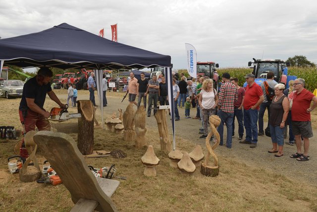 Auf den abgeernteten Felder neben dem Feldtage-Gelände war kaum ein Parkplatz zu ergattern, die Kennzeichen der Autos verrieten, dass die Feldtage zu einem Anzehungspunkt auch für Besucher geworden ist, die nicht eben um die Ecke wohnen. Aber auch viele Menschen aus der Region nutzten das bis zum Einsetzen von Schauern am späteren Sonntagnachmittag ideale Spätsommerwetter, um die alten Gefährte anzuschauen oder sich unter die stolzen Besitzer der Landgeräte-Oldtimer zu mischen. Für ein Rahmenprogramm hatte das ausrichtende "Bulldog Oldtimer Team Wössingen" gesorgt. Ganz Mutige kletterten auf den hohen Mast, viele bestaunten die Maschinenvorführungen. Zum Schwätzen traf man sich schließlich im und vor dem Zelt. An Gesprächsstoff mangelte es nicht - schließlich waren all die vielen Eindrücke zu verarbeiten, die man während des Rundgangs gesammet hatte ...