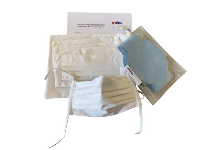 Das Unternehmen ist bereits langjährig im Bereich der Infektionsprävention, insbesondere der Sterilgutversorgung für Krankenhäuser mit eigenem Produktportfolio tätig. Kögel stellt in diesem Zusammenhang Produkte für den gesamten Sterilgutkreislauf von der Aufbereitung, Lagerung, dem Transport sowie der anschließenden Verwendung im OP her. Mit dieser Expertise aus der Medizintechnik und aufgrund der Tatsache, dass Gesichtsmasken derzeit nur schwer zu erhältlich sind, entwickelte die Kögel Med-Solutions eine Maske, gefertigt aus schwerer, kochfester Baumwolle, die mit einem Keimbarriere-Vlies aus der Medizintechnik / Zentralsterilisation kombiniert wird.