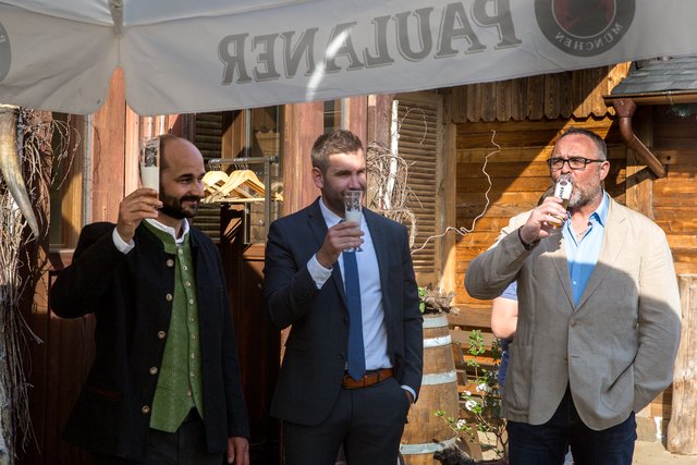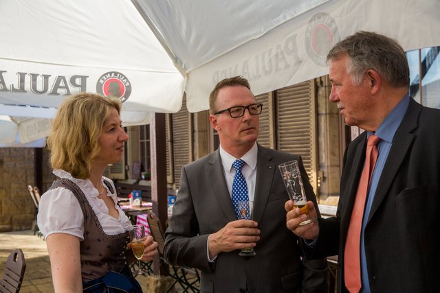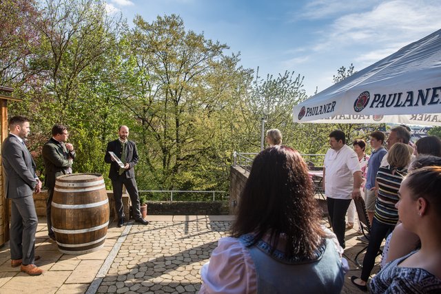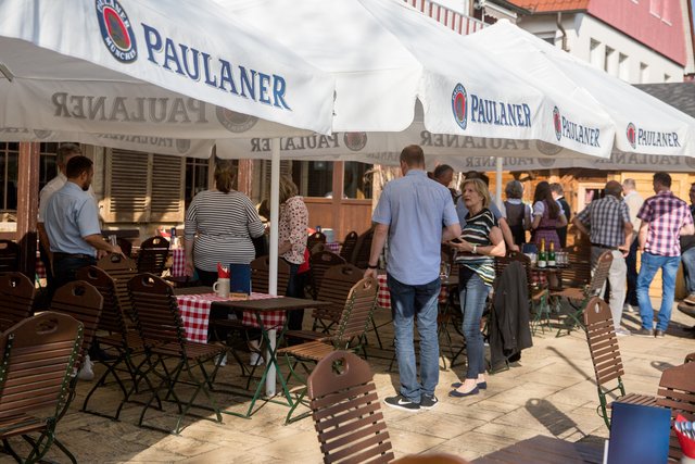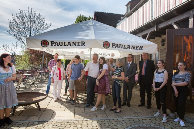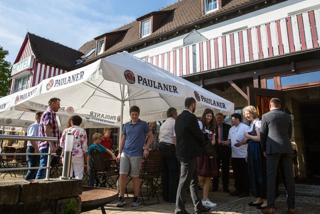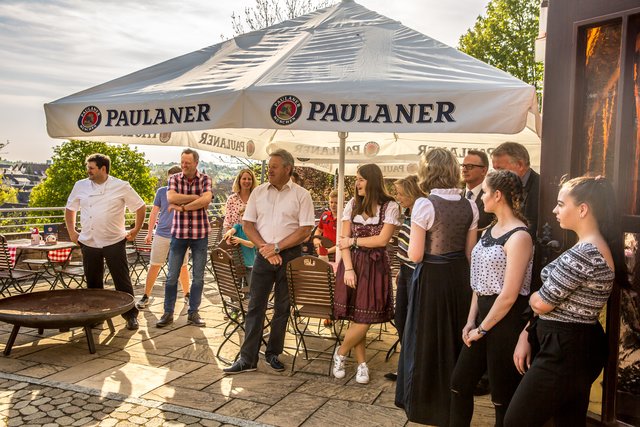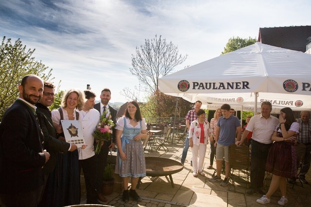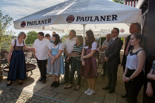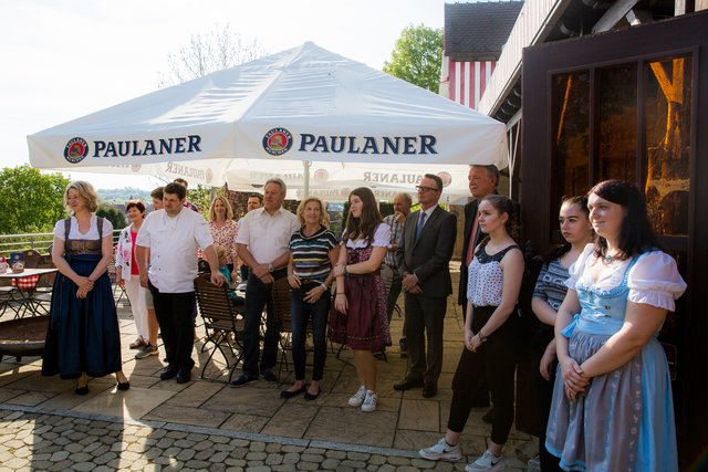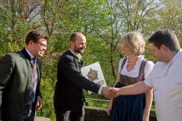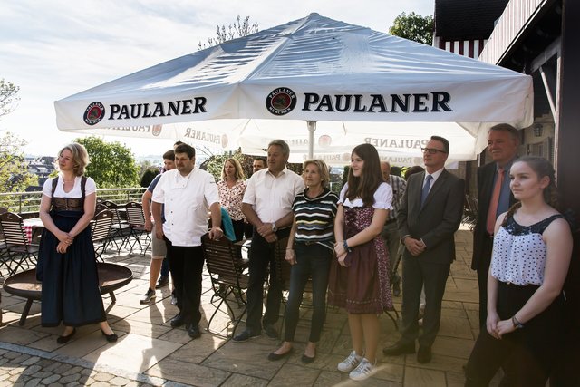 Bei frühlingshaftem Biergarten-Wetter würdigte Thomas Recht die Wirtsleute und Mitarbeiter vom Wirtshaus Lindner. "Viele Gaststätten haben gutes Bier und gute Speisen. Aber nur wenige bieten ein positives Gesamterlebnis. Wir sind der Meinung, dass das hier im Wirtshaus Lindner definitiv gegeben ist. Wir freuen uns, dass wir der Familie Lindner und ihrem Team heute den Stern der Gastlichkeit übergeben zu dürfen."
