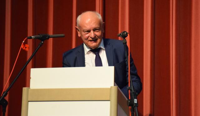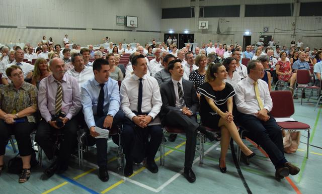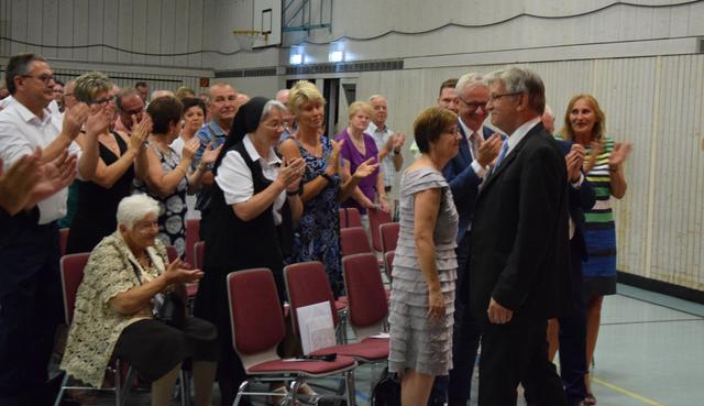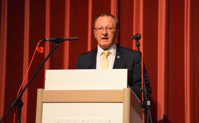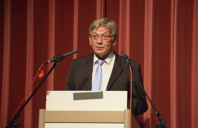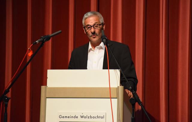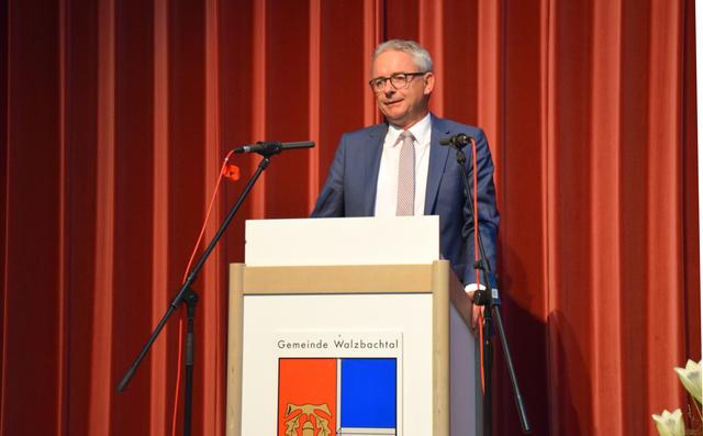 „Es waren 16 gute Jahre“, meinte Landrat Dr. Christoph Schnaudigel, der Karl-Heinz Burgey bescheinigte, als „Bürgermeister für alle Walzbachtaler“ zur Überwindung des hergebrachten Ortsteildenkens beigetragen zu haben. Dabei habe er frühzeitig Themen gesetzt wie Energieeinsparung, Breitbandversorgung und vor allem das Leuchtturmprojekt „Soziales Netz Walzbachtal“. Keine Gemeinde habe ein so ausdifferenziertes Angebot für Senioren, bei Kinderbetreuung und Familienzentren stehe sie im Kreisdurchschnitt „sehr gut“ da. Der Landrat bedankte sich unter anderem für die verlässliche Partnerschaft bei der Bewältigung der Flüchtlingszahlen, nannte den Neubau des Rathauses eine „gute Entscheidung“ und drückte „Bedauern und Wehmut“ über Burgeys Ausscheiden aus, denn man habe „gut zusammengearbeitet“.