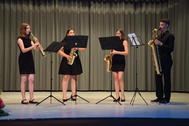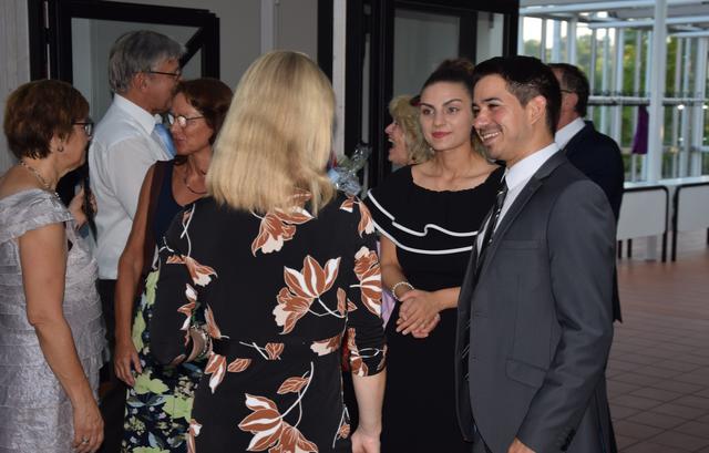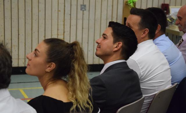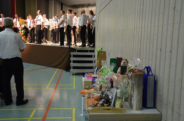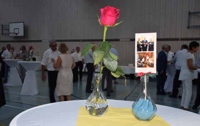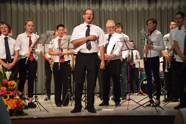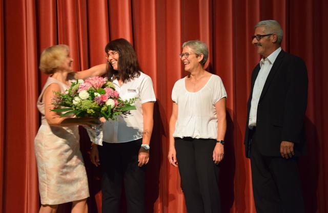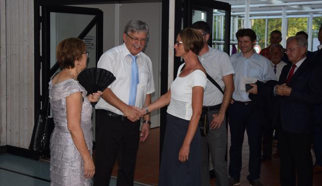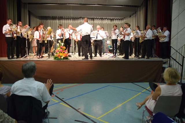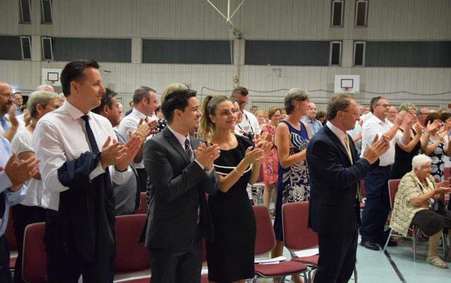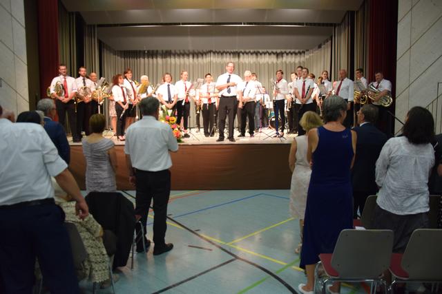 Schon zuvor war Anja Leyerle, die Leiterin des Zentralbüros, die ab September nach Stutensee wechselt, für die Organisation des Festakts mit einem Blumenstrauß geehrt worden. Mit einem feierlichen und einem rockigen Instrumentalstück, vorgetragen von der Feuerwehrkapelle unter Leitung von Jürgen Knam, gefolgt von einem außerprogrammmäßigen Marsch, der im gemeinsamen Absingen des Badnerlieds mündete, klang der offizielle Teil aus. Anschließend bestand Gelegenheit, bei einem von der Gemeinde arrangierten Empfang mit Büffet, den Abend gesellig ausklingen zu lassen.