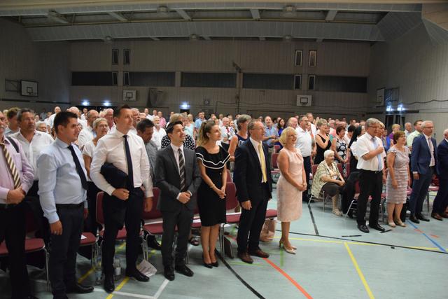 Sogar der Bürgermeister der ungarischen Partnergemeinde Bácsbokod, László Kovács, war angereist, um in einer auf Deutsch gehaltenen und mit Applaus bedachten Rede für die vielfache Unterstützung durch seinen Walzbachtaler Amtskollegen auf persönlicher und institutioneller Ebene, sei es in Kindergarten-, Schul- oder Feuerwehrangelegenheiten zu danken. Aus den Händen von Kovács erhielt Burgey die zweite Auszeichnung des Abends in Form einer Plakette der Gemeindeversammlung von Bácsbokod.