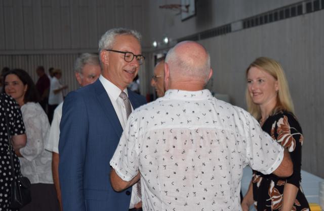 Nach Burgeys erster Wahl zum Bürgermeister sei ihm schnell klar gewesen, „dass ein dynamischer Macher ans Ruder gekommen“ war, erinnerte sich der CDU-Landtagsabgeordnete Joachim Kößler, der auch im Namen seiner ebenfalls anwesenden Abgeordneten-Kollegin Andrea Schwarz von den Grünen für Blühstreifen, Artenschutz und den Ausbau der Kinderbetreuung dankte. Dass der Bürgermeister im Schulbereich nicht so erfolgreich gewesen sei, habe nicht an ihm, sondern am Fehlen einer frühzeitigen Schulentwicklung gelegen. Wenn es um die Interessen der Kommune ging, hätten die Abgeordneten auch seine kämpferische Wesensart zu spüren bekommen.