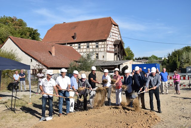 Mit dem ersten Spatenstich sind am Dienstagnachmittag in Flehingen die Erschließungsarbeiten für den neuen Wohnpark Alte Mühle eingeleitet worden.