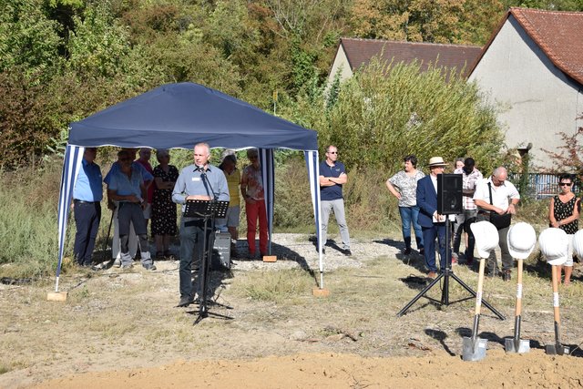 Bauherr ist die Baugenossenschaft Eden, hinter der das christliche Sozialwerk Bethesda mit Sitz in Neulingen im Enzkreis steht. Dessen Vorstandsvorsitzender Peter Mayer begrüßte die rund 60 Gäste, darunter Vertreter aus Gemeinderat, Gemeindeverwaltung, Sozialwerk Bethesda und aus den an der Entwicklung, Finanzierung und Erschließung beteiligten Firmen sowie interessierte Senioren, mit den Worten: „Das wird nicht der letzte Spatenstich sein.“ Damit spielte er nicht nur darauf an, dass ein zweiter Bauabschnitt mit zwölf weiteren Bungalows folgen soll. Er bekräftigte auch, dass sich das Sozialwerk darüber hinaus mit dem Bau eines 45 Plätze bietenden Pflegeheims, betreuter Wohnungen und einer Tagespflege in direkter Nachbarschaft zum Wohnpark weiter engagieren werde. Und zwar innerhalb eines Zeitraums bis 2022.