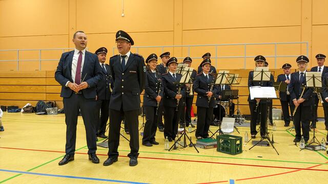 - Der neue Bürgermeister in Sulzfeld: Simon Bolg (links), hier mit dem Kommandanten der Sulzfelder Feuerwehr.