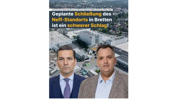 Die Nachricht von der geplanten Schließung des Neff-Standorts in Bretten und dem damit verbundenen Verlust von fast 1.000 Arbeitsplätzen ist ein schwerer Schlag – für die betroffenen Mitarbeiterinnen und Mitarbeiter, ihre Familien, aber auch für die gesamte Stadt Bretten und die Region.