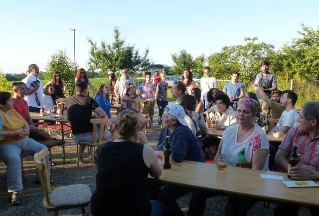 Auf seiner Konzertreise durch Deutschland und Italien mit Auftritten in Berlin, Bremen, Köln und Brecia/I, machte der Chor Universidade Federal do Ceara` aus Fortaleza/Br. Station in Nußbaum. Bei schönstem Sommerwetter begrüßte der Vorsitzende des OGV Nußbaum auf dem schönen Vereinsgelände die weitgereisten Gäste. Die Sänger aus der Millionenstadt bewunderten den Ausblick über das Kraichgauer Hügelland. Für das leibliche Wohl zog das OGV- Küchenteam alle Register. Dafür bedankten sich die jungen Studenten mit Lied- und Tanzeinlagen.