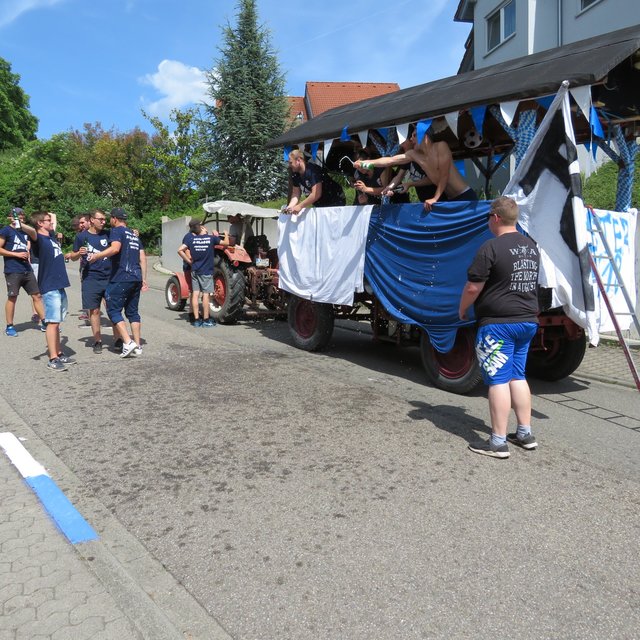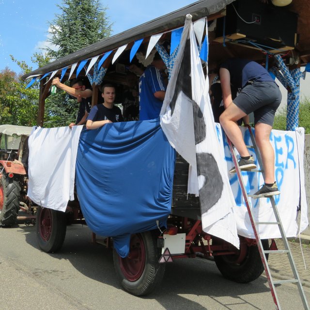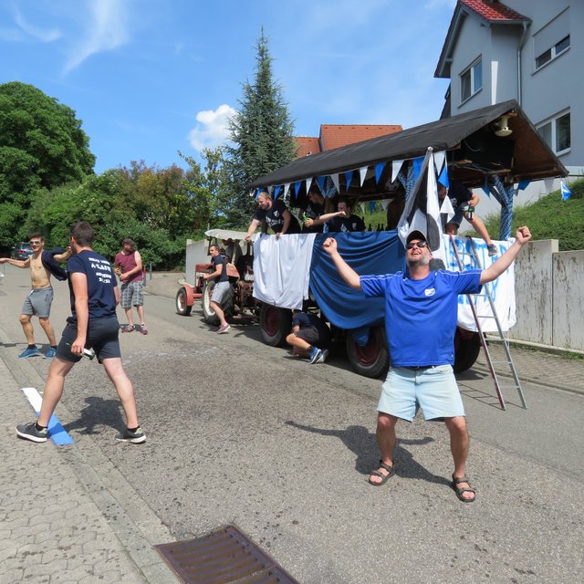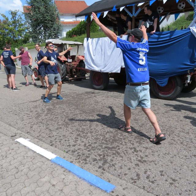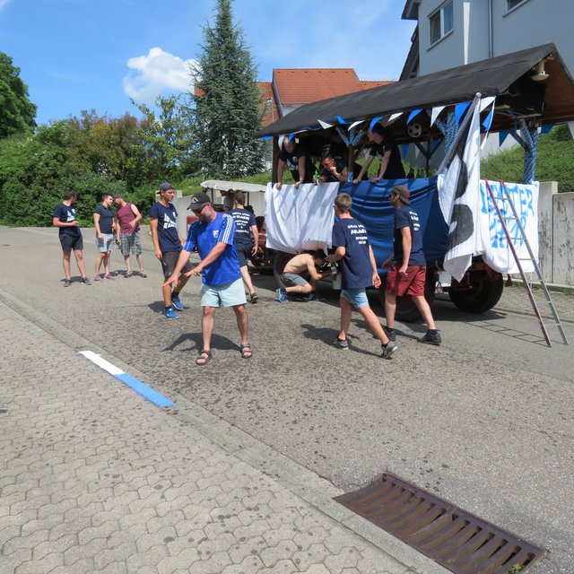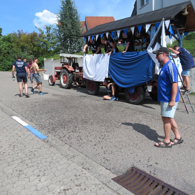 Mit einem „Siegeswagen“ und mit Farben und Pinseln bewaffnet zogen die Spieler durch die Straßen von Obergrombach und verschönerten vor den Häusern von FCO-Mitgliedern die Bordsteine: immer einen mit blauer, einen zweiten mit weißer Farbe. Teilweise waren auf den Gehwegrändern auch noch die Farbreste vom letzten, lange zurückliegenden Aufstieg zu erahnen. Diesmal soll ein Abstieg in weite Ferne verbannt werden. Andreas Ritter, der Vorsitzende „Organisation und Verwaltung“ des FCO, sieht es gelassen: „Jetzt sollen die Jungs erst einmal tüchtig feiern – sie haben es sich redlich verdient.“