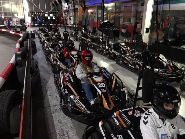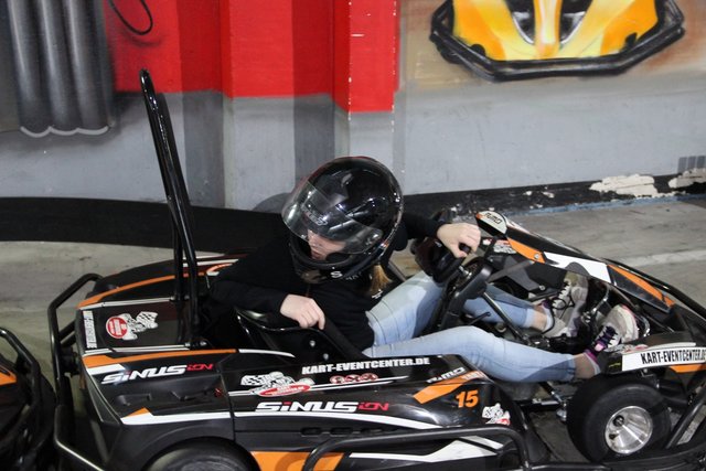 Erst am späten Nachmittag fuhr das Team zum verdienten Teamevent nach Durlach wo sie sich bei vielen Runden auf der Kartbahn messen konnten. Für einige war es absolutes Neuland und schnell verloren alle ihren Respekt und hatten sichtlich viel Spaß.