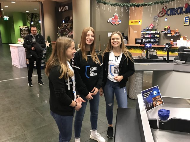 Vorbildlich und durch die Unterstützung eines großen Einkaufszentrums durften sich die Spielerinnen an einem lebhaften Einkaufssamstag sozial engagieren.