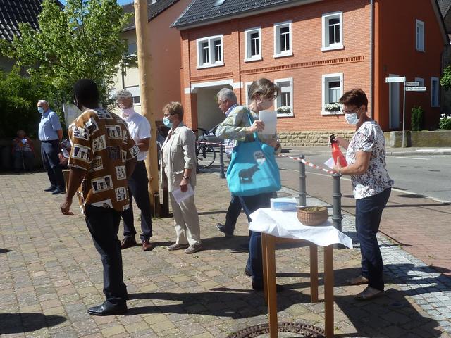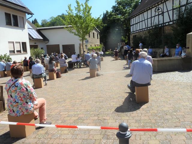 Gemeinsam beten, das Trennende im Hintergrund lassenDie evangelische Pfarrgemeinde Kürnbach-Bauerbach und die katholische Pfarrei St. Peter arbeiten eng zusammen. Die Evangelischen feiern ihre Gottesdienste in der den Katholischen gehörenden Kirche und nutzen auch das Pfarrheim. Nach außen sichtbar wird die Verbindung mehrmals im Jahr bei gemeinsamen Gottesdiensten, vor allem am Pfingsmontag. Weil in der Kirche nur 30 Leute zugelassen waren sind die Organisatoren - pragmatisch wie sie veranlagt...