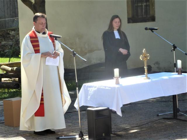 Gemeinsamer Gottesdienst auf dem Bauerbacher Dorfplatz am Pfingstmontag
