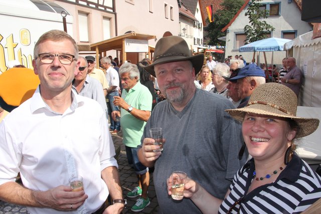 Weingartener Weinhoheiten mit Eckerbert von Bohlen und Halbach (links), Oberbürgermeisterin Cornelia Petzold-Schick und Landrat Schaudigel (rechts) | Foto: Klaus Kehrwecker