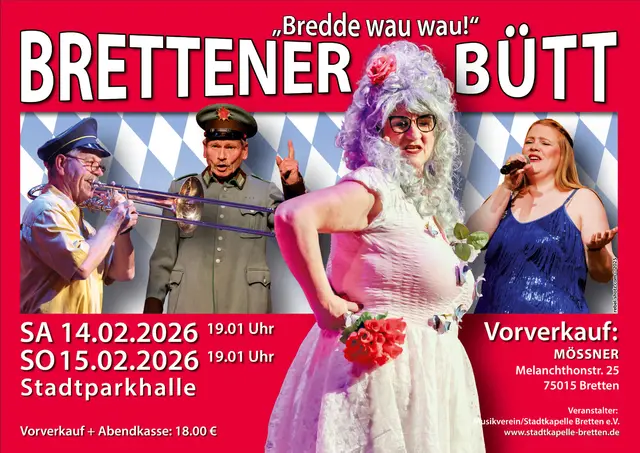 Karten für die zwei Prunksitzungen am 14. und 15. Februar 2026 sind nun im Ladengeschäft der Firma Mößner erhältlich. Die Veranstalter der Brettener Bütt bitten darum, die im Februar getätigten Reservierungen bis Mitte Dezember zu bestätigen oder freizugegeben, denn nach wie vor existiert gerade für die Samstagsvorstellung eine lange Warteliste. Selbstverständlich wird es auch wieder einen Narrenzug am 31. Januar und eine Seniorenbütt am 15. Februar 2026 geben.
