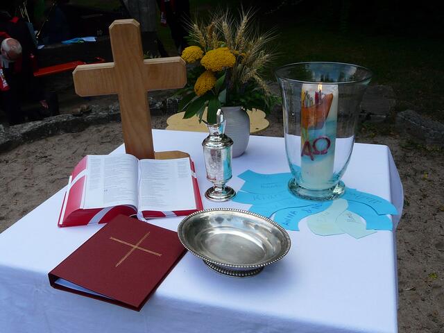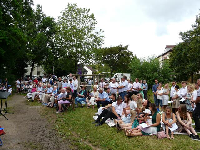 Bretten (wb) Einen besonderen Gottesdienst gab es am Sonntag den 16 Juli in Bretten. Gleich 14 Kinder waren von ihren Eltern zur Taufe angemeldet. Ungewöhnlich war auch der Ort des Geschehens. Mitten in der Stadt auf einem Spielplatz mit einem vorbeifließenden Bach wurde ein idealer Ort gefunden. Alles war bestens vorbereitet – ein Altar, eine Hütte für den Posaunenchor, ein Tisch für die vielen Taufkerzen, einige Sitzplätze, Spielgeräte und auch das Wetter zeigte sich von seiner besten Seite....