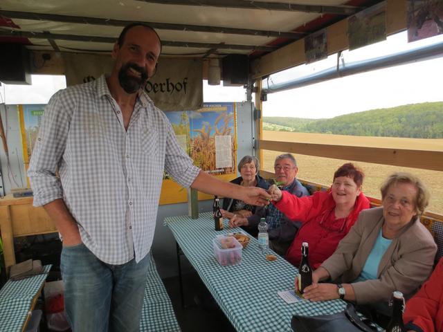 Königsbach-Stein (war) Das Schild mit dem Titel „Damenbad“ im Hühnergarten vor dem Eichhälderhof in Königsbach-Stein, neben dem sich die verschiedenen Hennen des Hofes tummeln, sorgte bereits vor der Rundfahrt mit dem überdachten Planwagen bei den 19 Teilnehmerinnen und Teilnehmern der Ferienaktion der „Brettener Woche“ für ein freudiges Schmunzeln. Martin Ehrismann, der nach seiner Meisterprüfung im Jahre 1991 seit 1995 den Familienbetrieb führt und seit dem Jahr 2013 seine Frau Sabine Büttner...