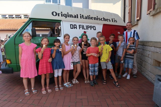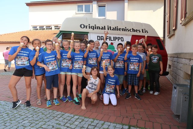 Der Förderverein der Grundschule Rinklingen e.V. hat es sich zur Tradition gemacht, am letzten Schultag vor den großen Sommerferien für die Kinder und Lehrer der Grundschule Rinklingen eine Runde leckeres Eis zu spendieren. Als besondere Überraschung, und vor allem als Belohnung für die tollen Darbietungen bei dem Mega-Zirkusprojekt im Juli 2018, spendierte der Förderverein allen Kindern und Lehrern selbstgemachtes Eis von der Eisdiele DA FILIPPO aus Bretten-Gondelsheim, die für diese Aktion...