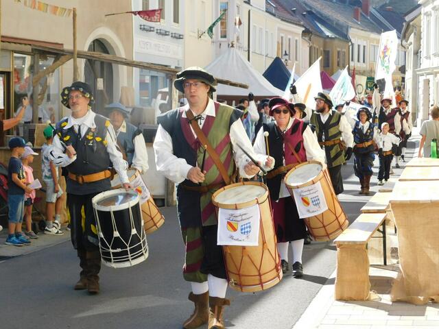 Kraichgau Fahnenschwinger Bretten (KFB) in Eggenburg Österreich. Am Wochenende waren die KFB zum einen der größten Mittelalterfeste nach Eggenburg in Österreich eingeladen. An zwei Tage durften die KFB an verschiedenen Plätzen innerhalb der Stadtmauern ihr Können präsentieren. Mit 2 Umzügen und 7 Auftritten waren die Trommler und Fahnenschwinger bei großer Hitze sehr gefordert und bekamen viel Applaus für ihre Darbietungen. Unterstützt wurden sie bei den Auftritten von Fahnenschwingern aus...
