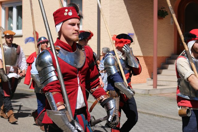 Mit Uniform und Fanfaren: Versammlung der Bürgerwehren und Milizen in Bretten