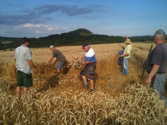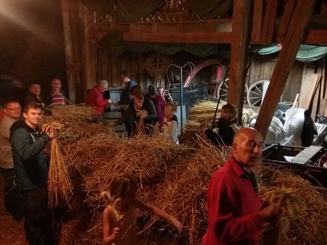 Seit nahezu 90 Jahren wird in einem von Weinbergen und Seen umgebenen Dorf das Erntedankfest traditionsgemäß am ersten Sonntag im Oktober gefeiert. Somit laufen die Vorbereitungen hierfür in diesem Dorf, dem württembergischen Teil der baden-württembergischen Doppelgemeinde Ölbronn-Dürrn, auf Hochtouren. Der Weizen für die Erntekrone und –wagen wurde bereits im Juli von Hand gemäht und eingelagert. Jetzt gilt es, die Ähren zu „Büschele“ zu binden und mit diesen dann anschließend den Erntewagen...