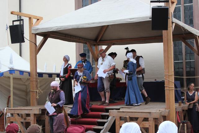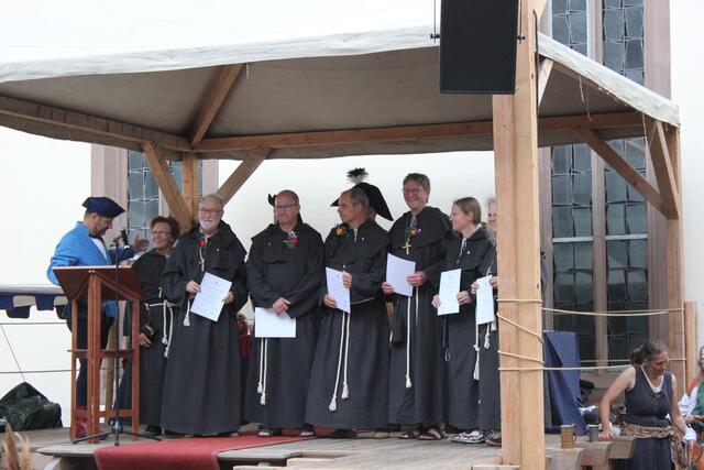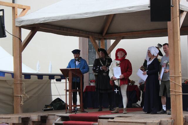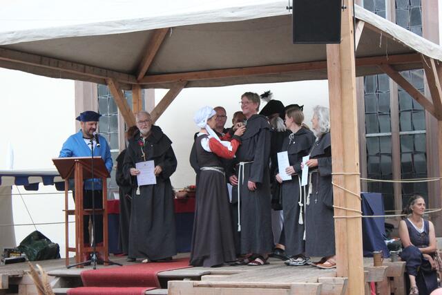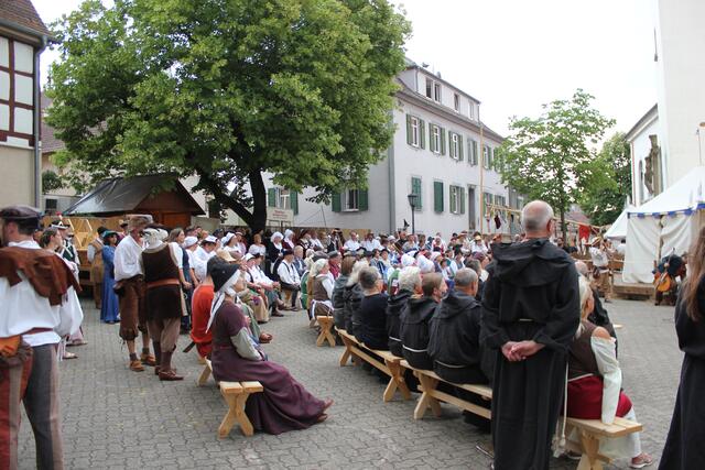 Bretten (kuna) Das Fest kann beginnen! Leichte Regenschauer und kurze Windböen konnten die Aktiven nicht davon abhalten, ihr erstes Peter-und-Paul-Fest nach der Corona-Pause mit einem feierlichen Ehrungsabend auf dem Kirchplatz einzuläuten. "Wir sind ein Meisterwerk" Dank der mittelalterlichen Musik, vorgetragen von der Gruppe HypoKrass, war der Regen kurzerhand wie weggezaubert und die Ehrungen konnten beginnen. Stadtvogt Thomas Lindemann hob in seiner Auftaktrede die Aufnahme des...