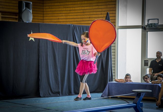Bretten (kn) Kopfüber am Trapez baumeln, Diabolos in die Lüfte werfen, auf Tonnen laufen oder Flammen auf den Händen halten – was sich anhört wie das Programm eines großen Zirkus wurde für knapp 100 Schülerinnen und Schüler der vierten Klassen der Schillerschule in Bretten für eine Woche zum Alltag. Im Juni durften diese Zirkusluft schnuppern, denn hier stand für sie ein ganz besonderes Projekt an: Der Circus Ballessa hatte auf dem Platz am Husarenbaum ein großes Zirkuszelt aufgebaut. „Vorhang...